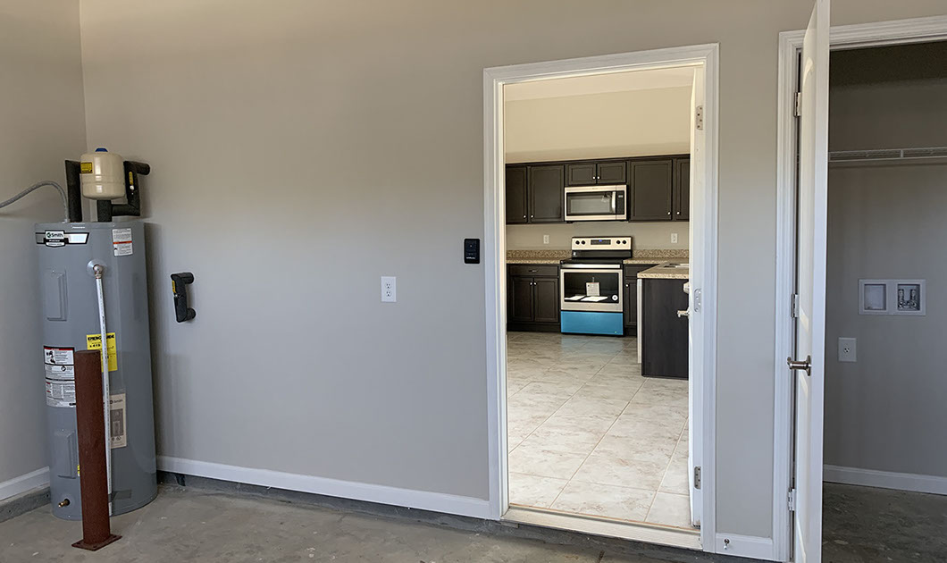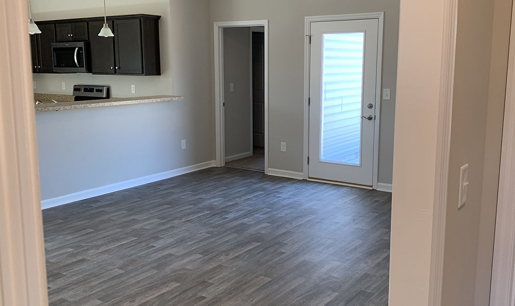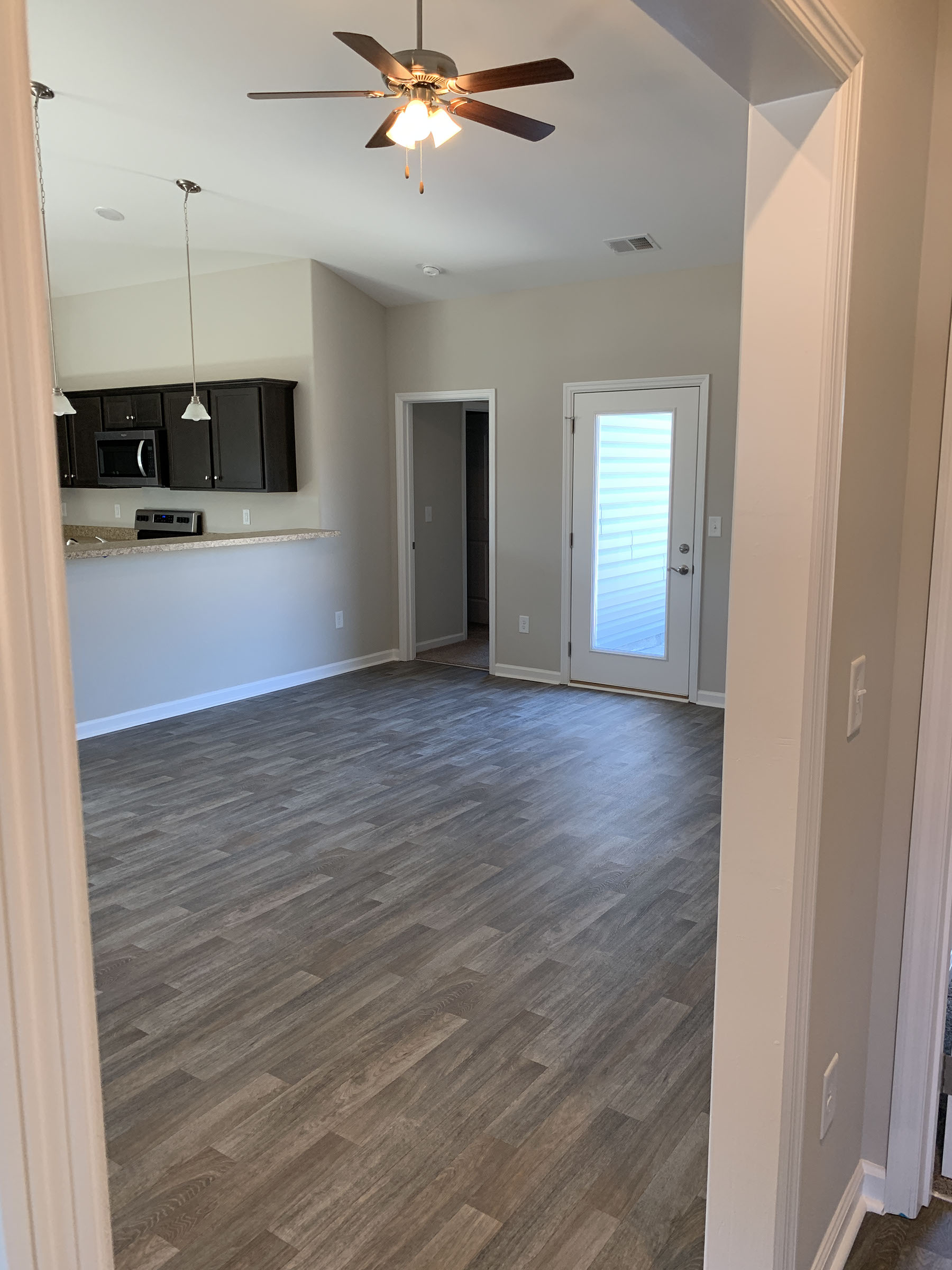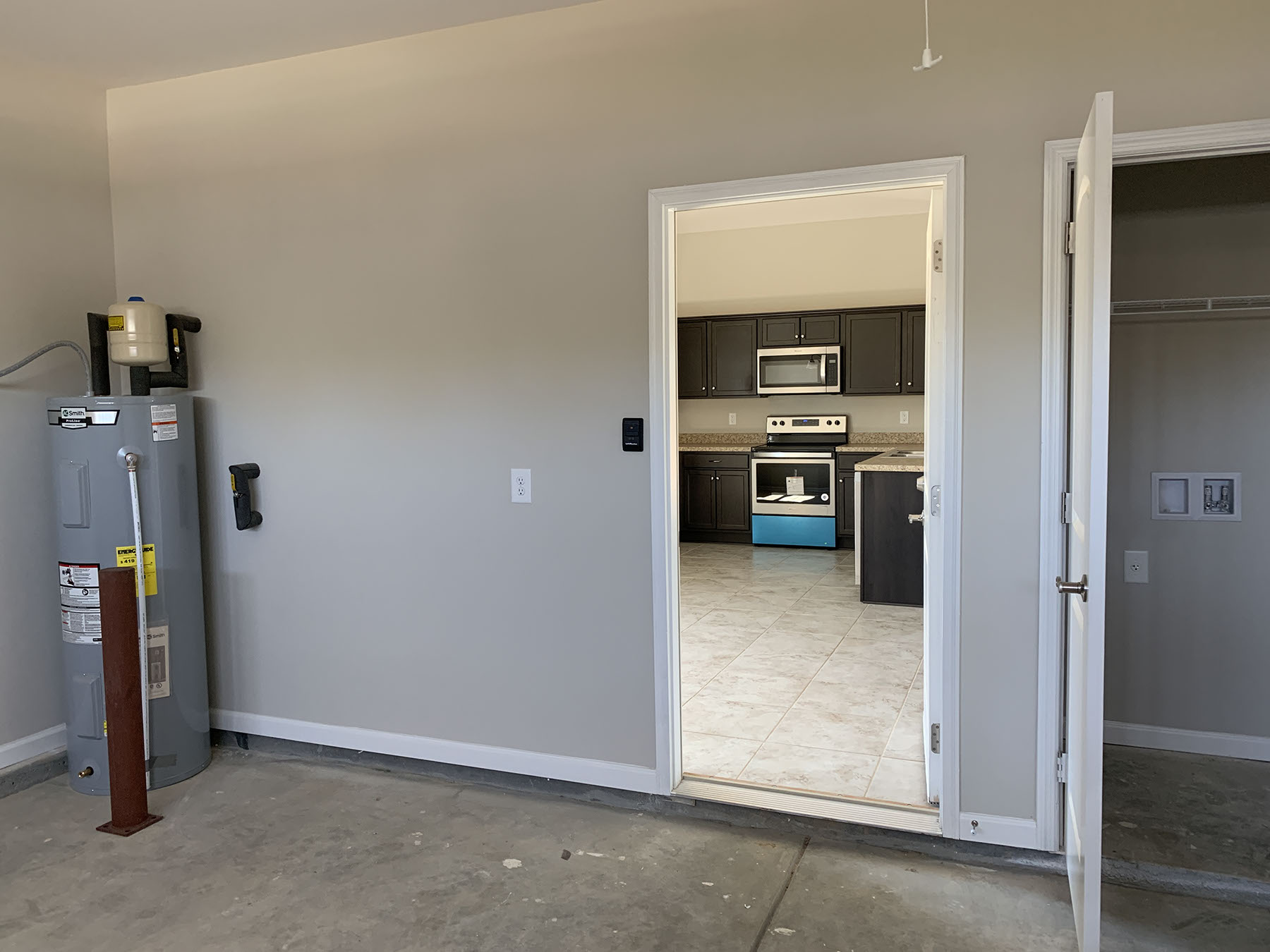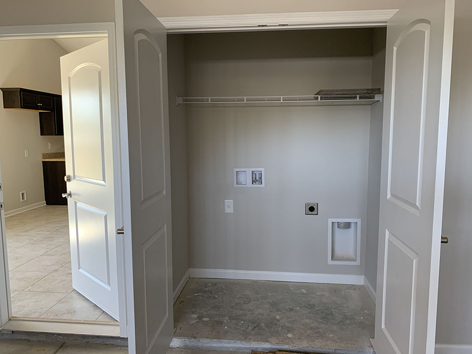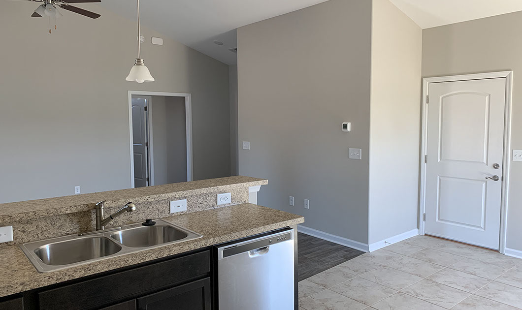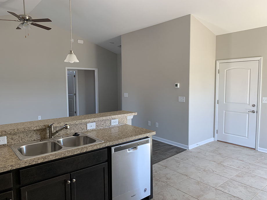 The Carolinian is an open 3 bedroom, 2 full bath split floor plan. The Carolinian comes standard with 18” tile flooring in all wet areas and your choice of vinyl flooring, carpet or a mix of both throughout the rest of the home. The kitchen is equipped with a breakfast bar, dining area, stainless steel appliances, pendant lighting, flushed LED lighting, cabinets that include crown, hardware and soft close drawers. The master bedroom features a spacious walk-in closet, tray ceiling, ceiling fan and a linen closet. One of the guest bedrooms has a vaulted ceiling and both guest bedrooms come standard with flushed LED lighting. All ceilings are standard at 9’ or vaulted. All garages are finished and have pull down stairs to access the attic storage. The garage door has windows, comes with a remote and is wi-fi capable. A gutter for the front door is included as a standard feature. Exterior landscaping features include, completely sodded yards, plant beds and street trees for you to enjoy.