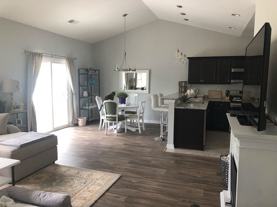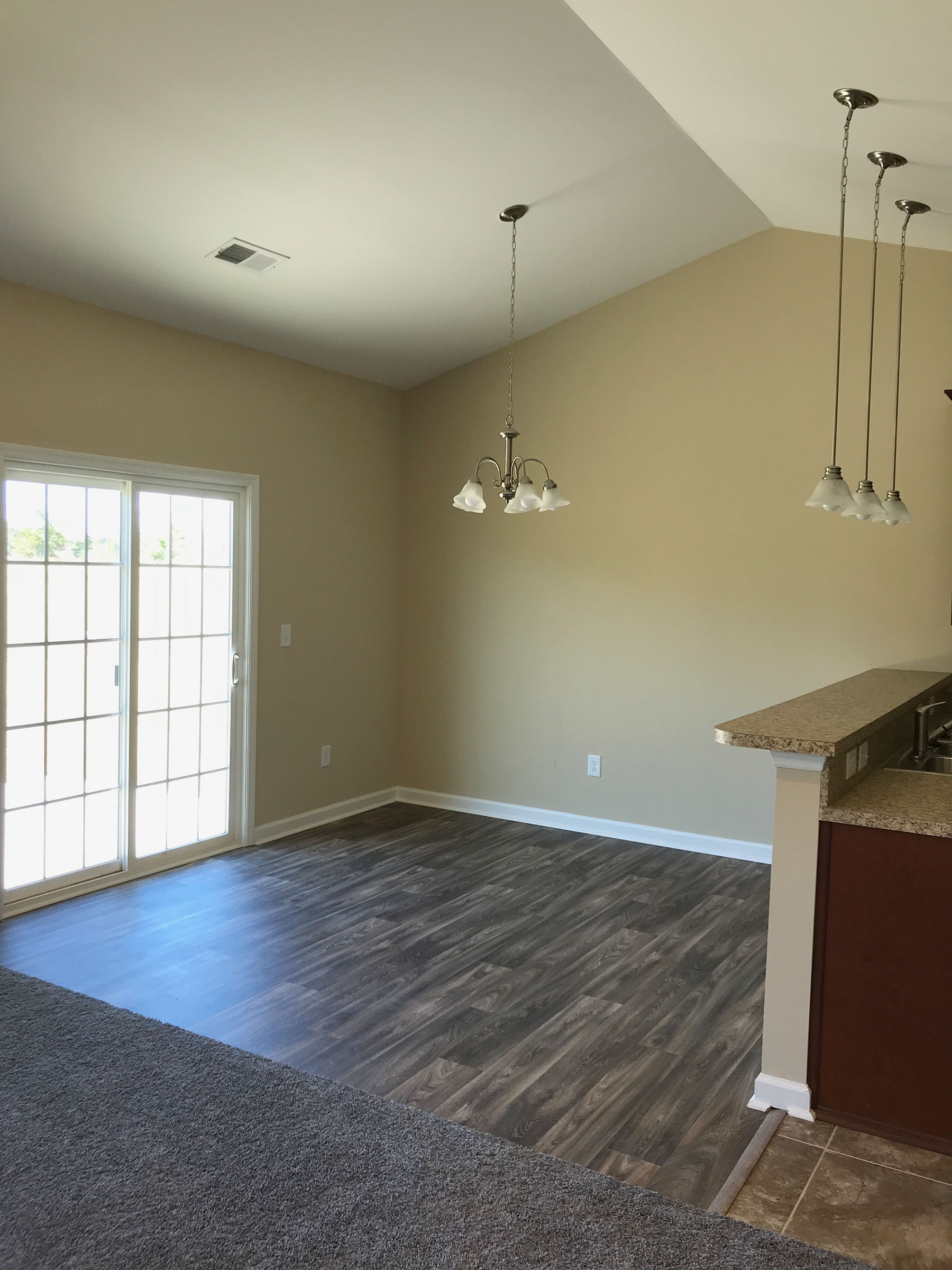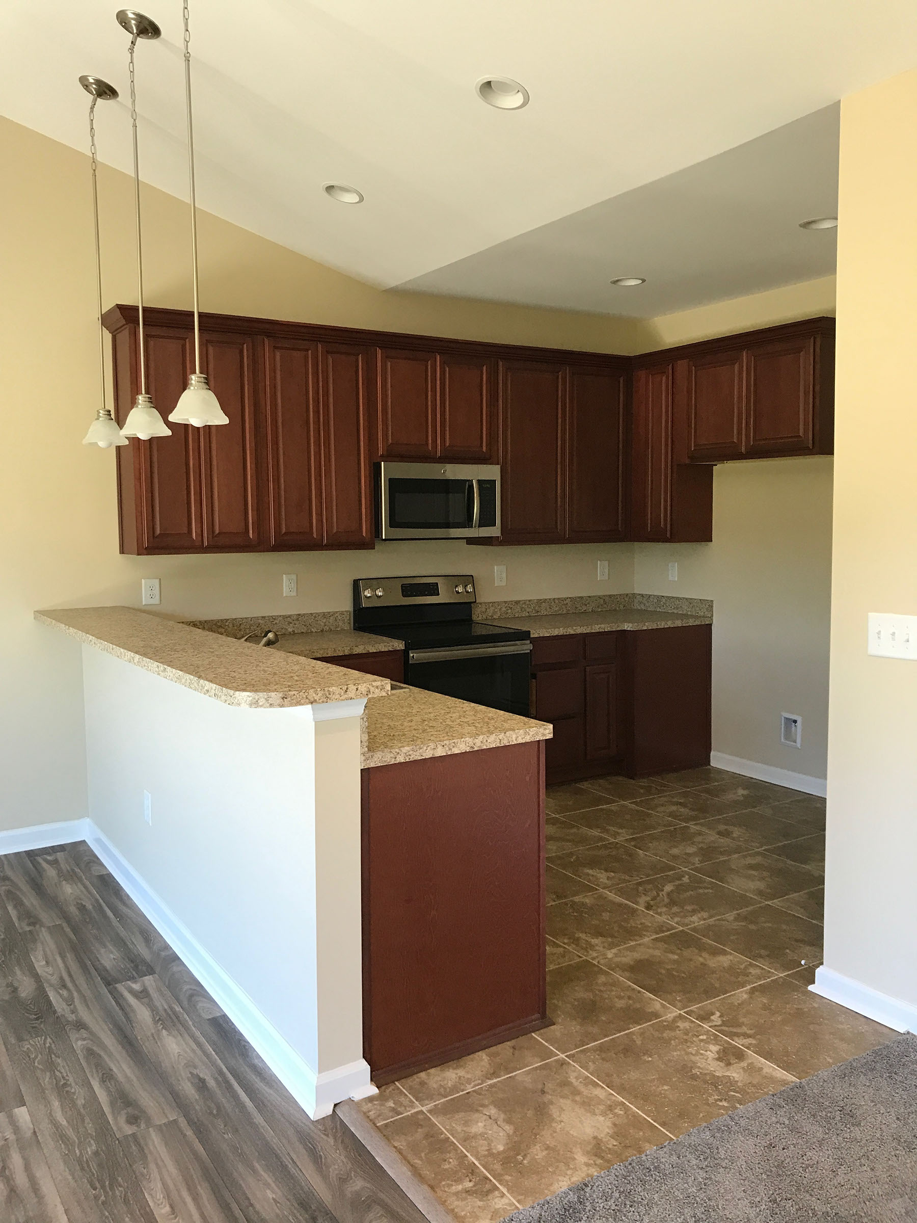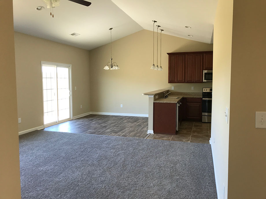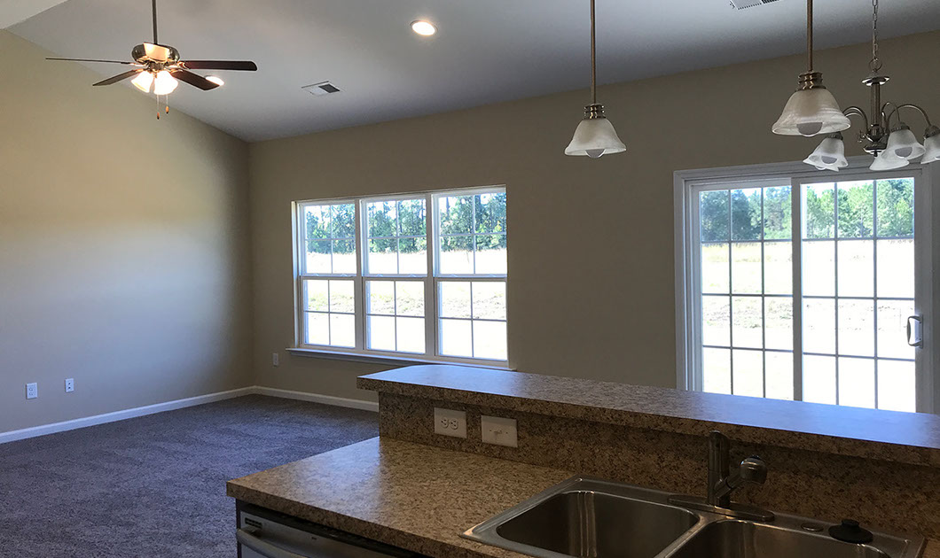 The Payton is an open 3 bedroom, 2 full bath floor plan. This one car garage plan comes standard with 18” tile in all wet areas and your choice of vinyl flooring, carpet or a mix of both throughout the rest of the home. The Payton kitchen is equipped with a breakfast bar, dining area, stainless steel appliances, flushed LED lighting and cabinets that include crown, hardware and soft close drawers. The master bedroom features a spacious walk-in closet with shelving, tray ceiling, ceiling fan and a linen closet. Both guest bedrooms have flushed LED lighting and are pre-wired for ceiling fans. Ceilings in the Payton plan are all 9’ or vaulted. All garages are finished and have a garage door with windows that is wi-fi capable and comes with a remote. A gutter for the front door is included as a standard feature. The Payton is a one car garage plan but has the added feature of additional concrete for the driveway to make parking more convenient. Exterior landscaping features include a rear patio, completely sodded yards, plant beds and street trees for you to enjoy.