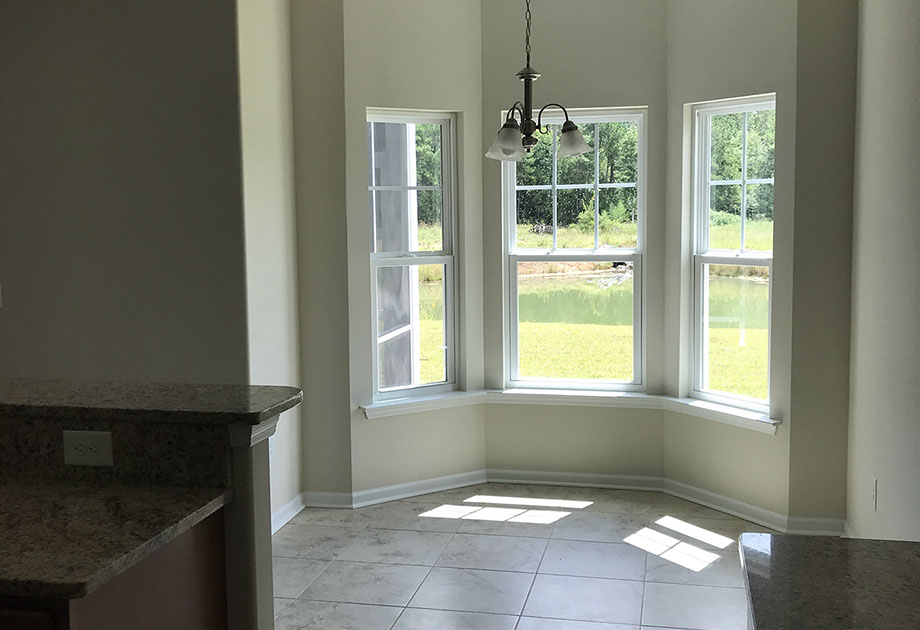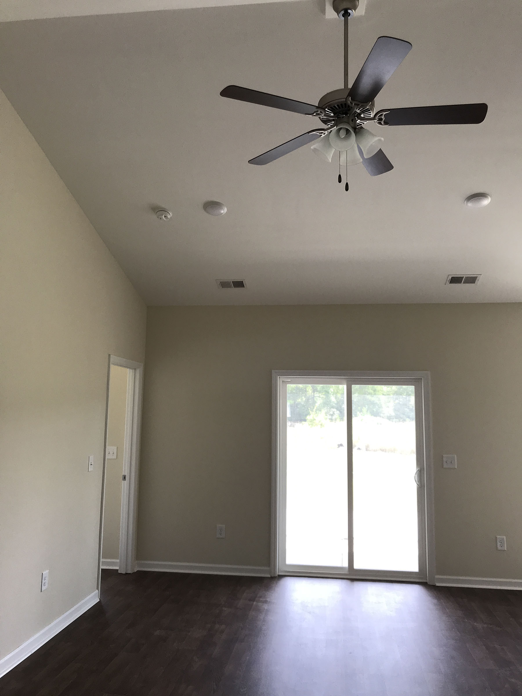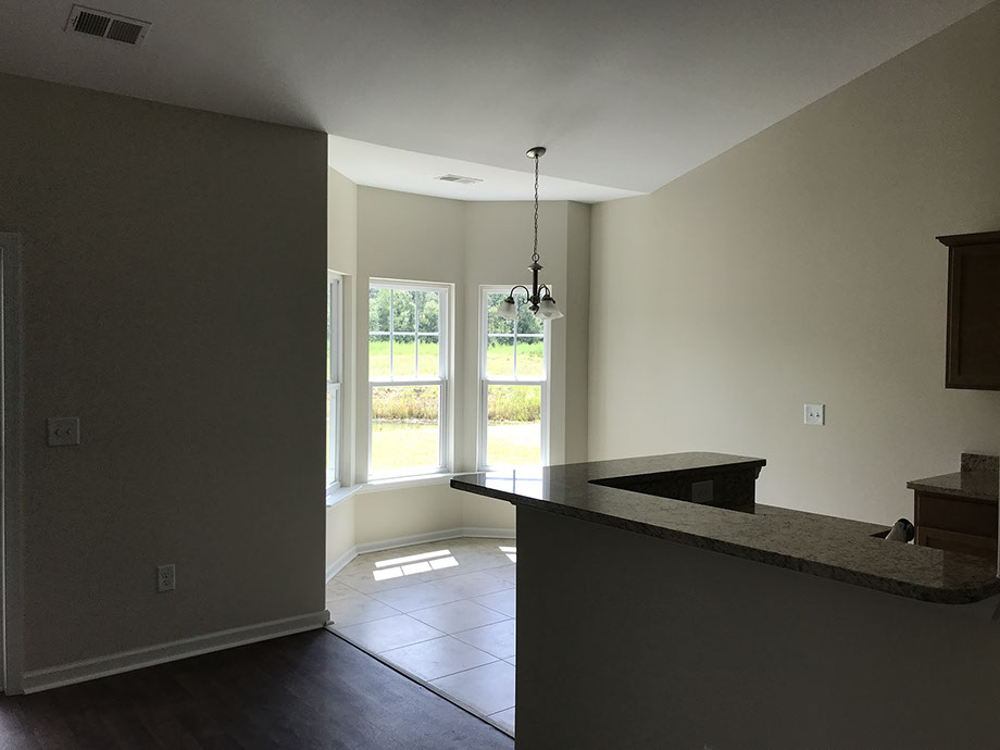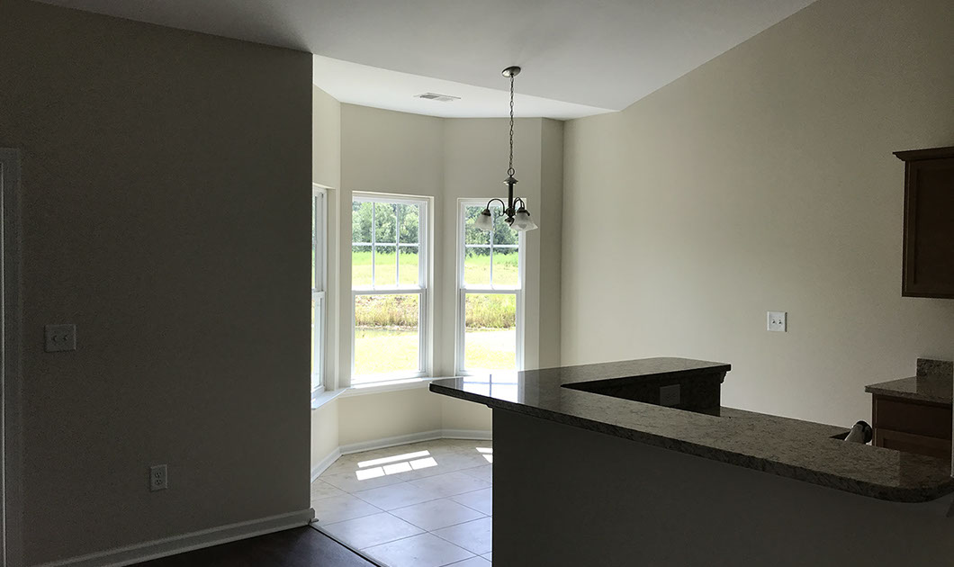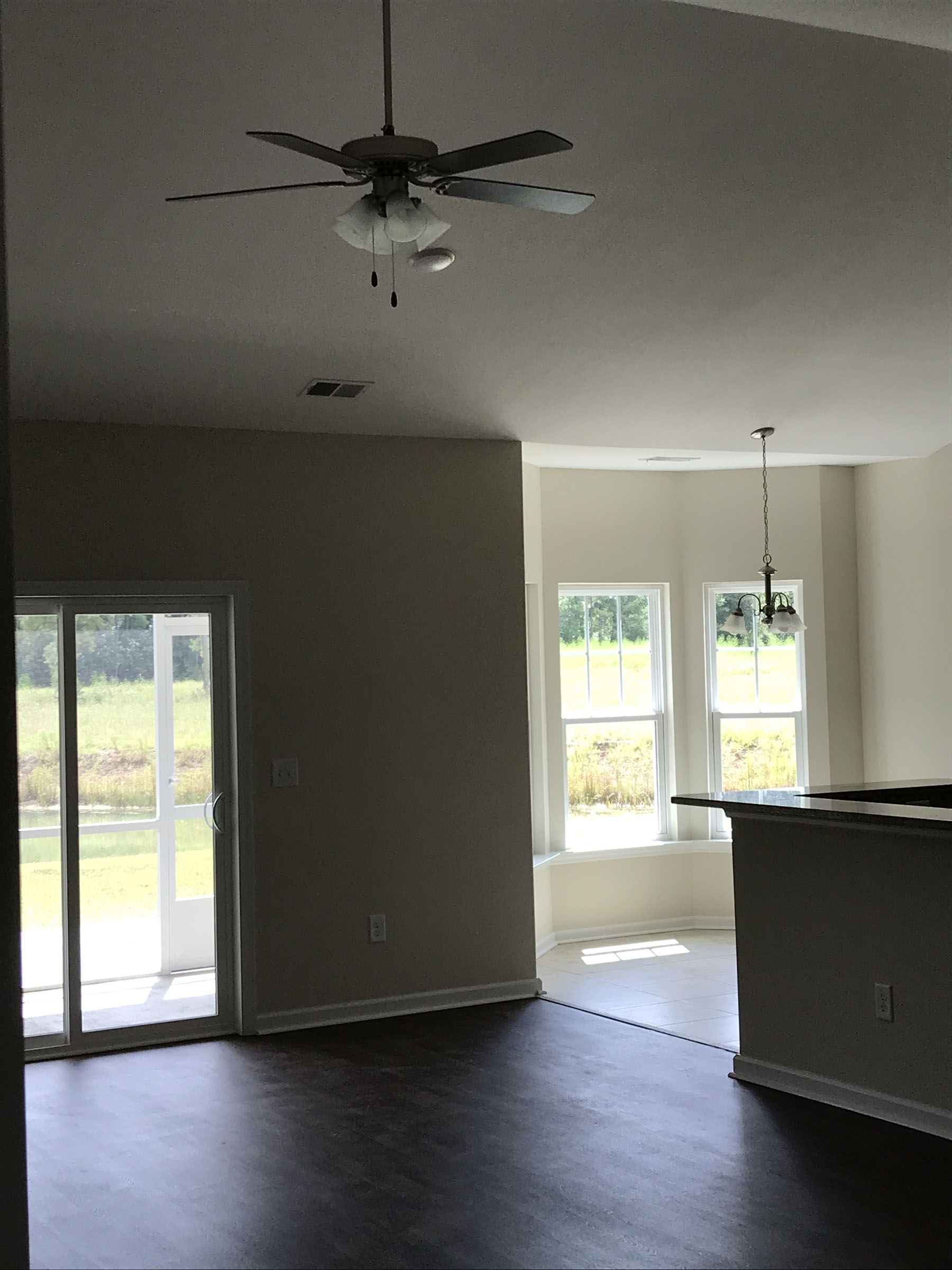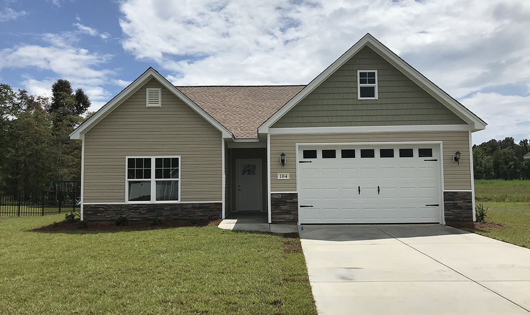 The Savannah is an open 3 bedroom, 2 full bath floor plan. This incredibly spacious plan comes standard with 18” tile in all wet areas and your choice of vinyl flooring, carpet or a mix of both throughout the rest of the home. The Savannah kitchen is equipped with two pantry’s, a breakfast bar, dining area with a bay window, stainless steel appliances, flushed LED lighting and cabinets that include crown, hardware and soft close drawers. The master bedroom features a beautiful bay window with a sitting area, spacious walk-in closet with shelving, tray ceiling, ceiling fan and a linen closet. Both guest bedrooms have flushed LED lighting, large closets and one guest bedroom has vaulted ceilings. Ceilings in the Savannah plan are all 9’ or vaulted. All garages are finished and have pull down stairs to access the attic storage. The garage door has windows, comes with a remote and is wi-fi capable. A gutter for the front door is included as a standard feature. Exterior landscaping features include, a rear patio, completely sodded yards, plant beds and street trees for you to enjoy.