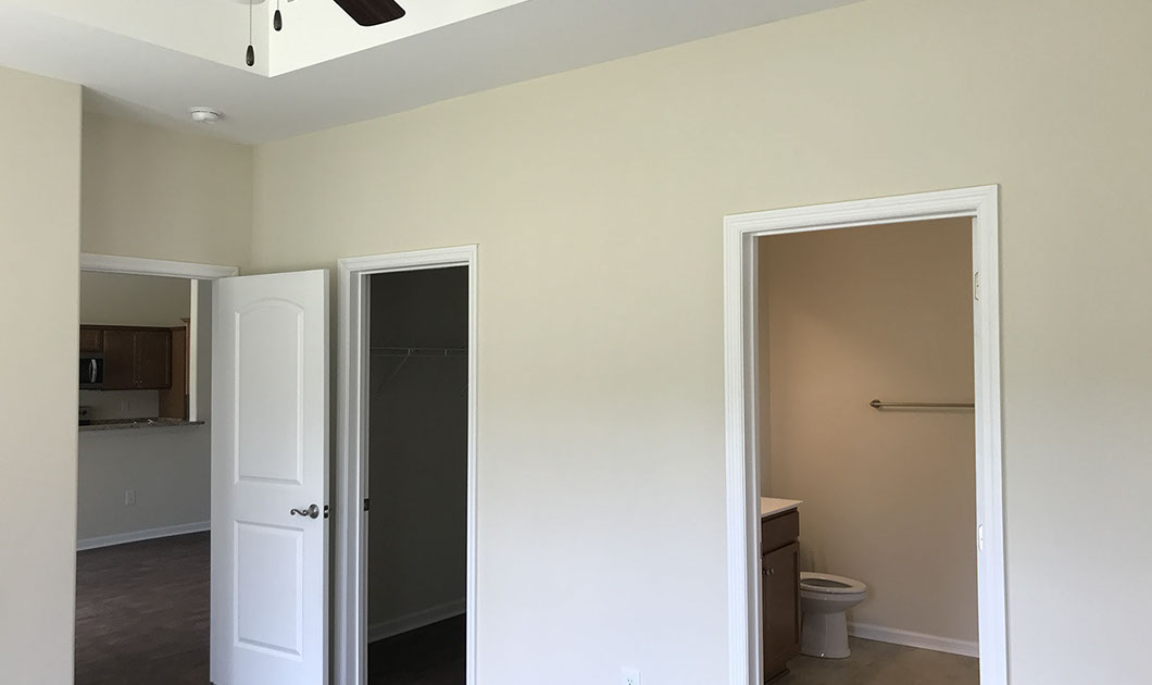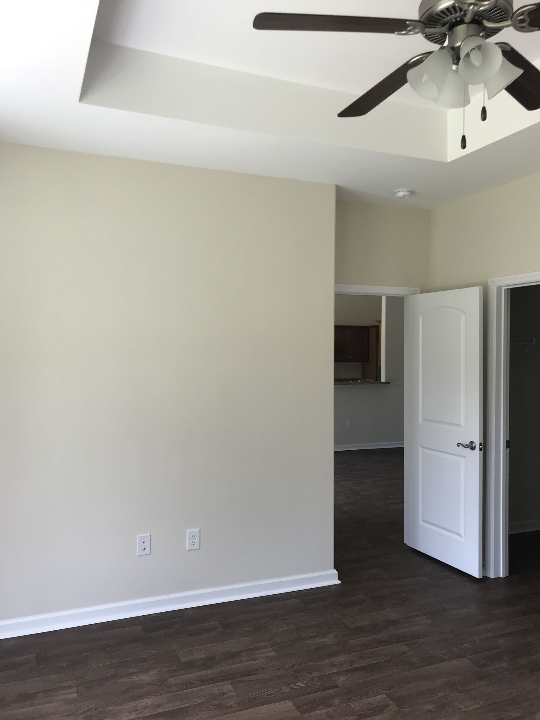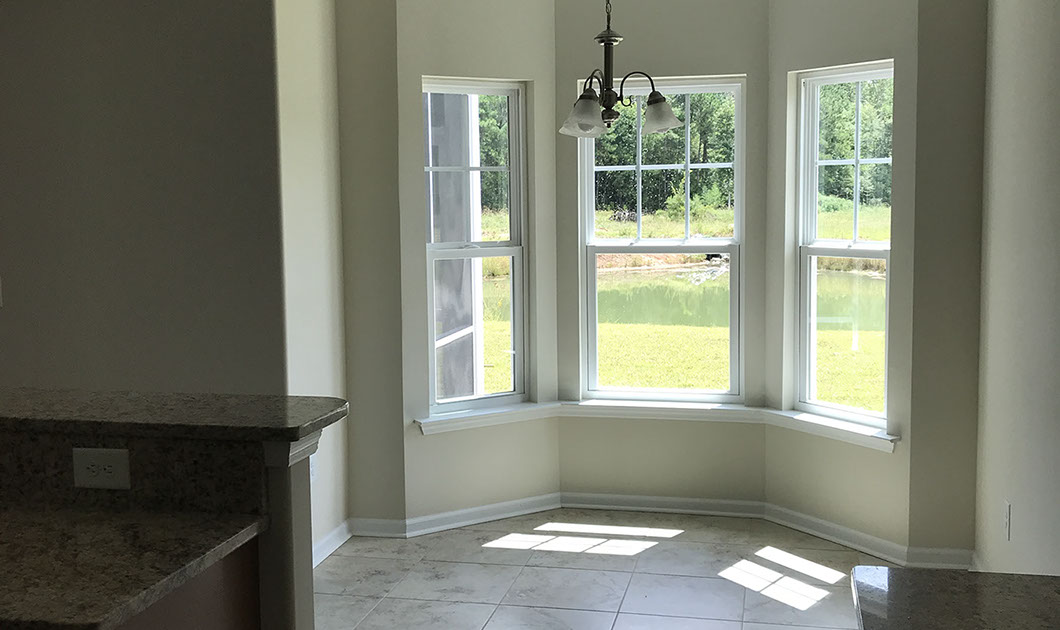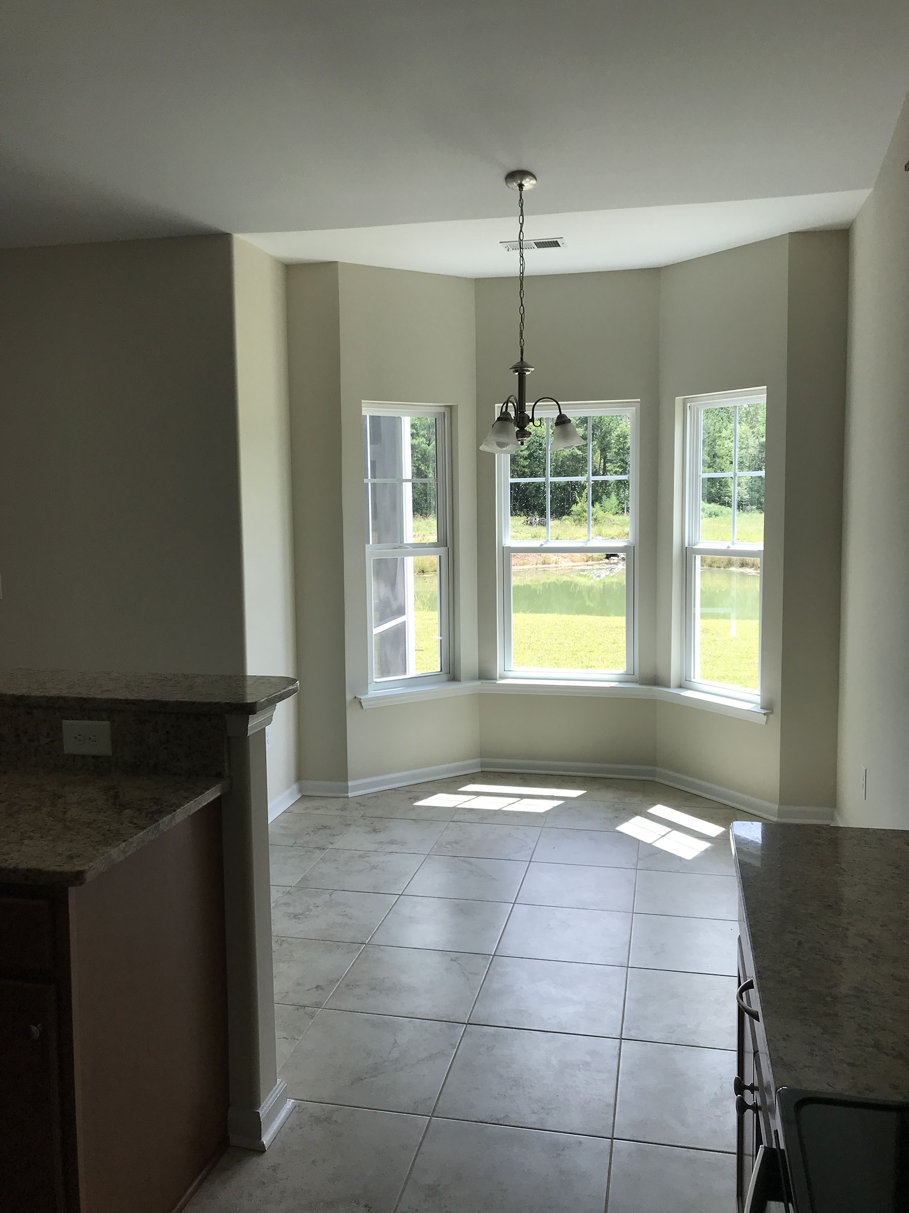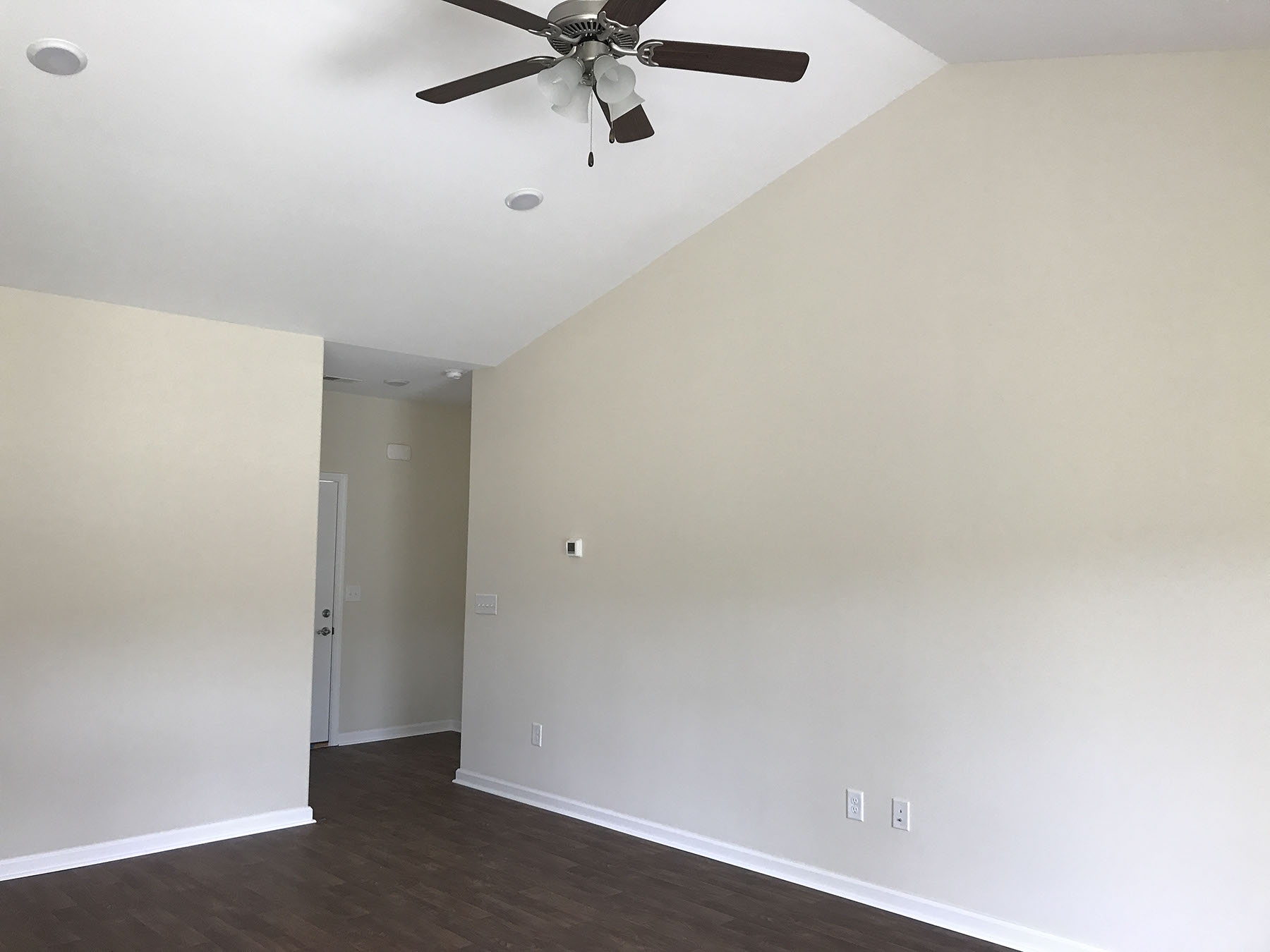 The Savannah is an open 3 bedroom, 2 full bath floor plan. This incredibly spacious plan comes standard with 18” tile in all wet areas and your choice of vinyl flooring, carpet or a mix of both throughout the rest of the home. The Savannah kitchen is equipped with two pantry’s, a breakfast bar, dining area with a bay window, stainless steel appliances, flushed LED lighting and cabinets that include crown, hardware and soft close drawers. The master bedroom features a beautiful bay window with a sitting area, spacious walk-in closet with shelving, tray ceiling, ceiling fan and a linen closet. Both guest bedrooms have flushed LED lighting, large closets and one guest bedroom has vaulted ceilings. Ceilings in the Savannah plan are all 9’ or vaulted. All garages are finished and have pull down stairs to access the attic storage. The garage door has windows, comes with a remote and is wi-fi capable. A gutter for the front door is included as a standard feature. Exterior landscaping features include, a rear patio, completely sodded yards, plant beds and street trees for you to enjoy.