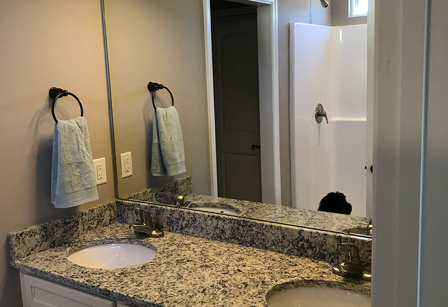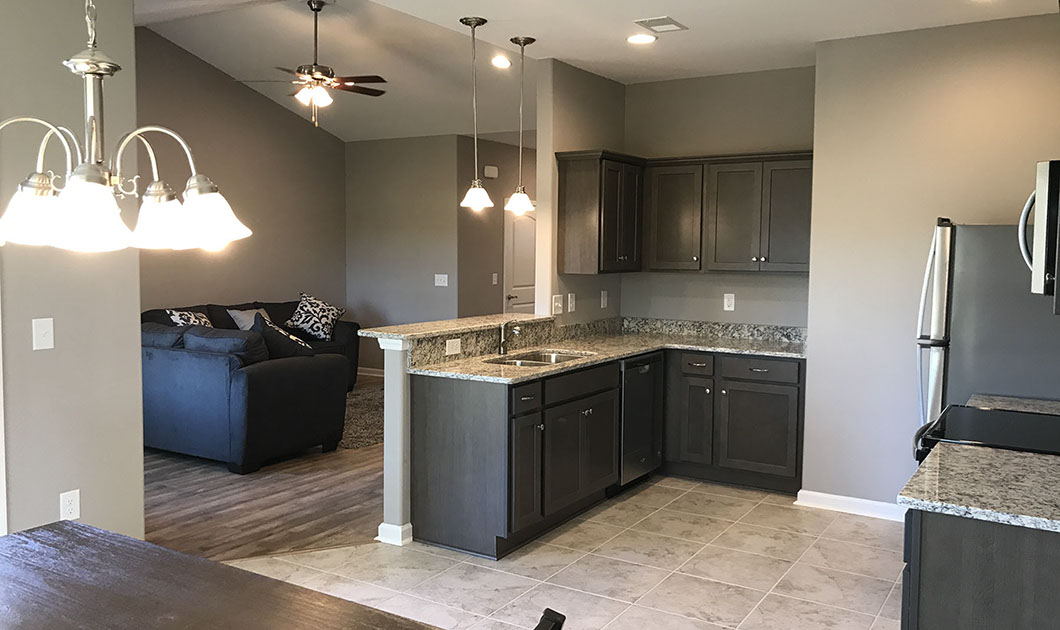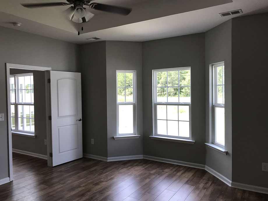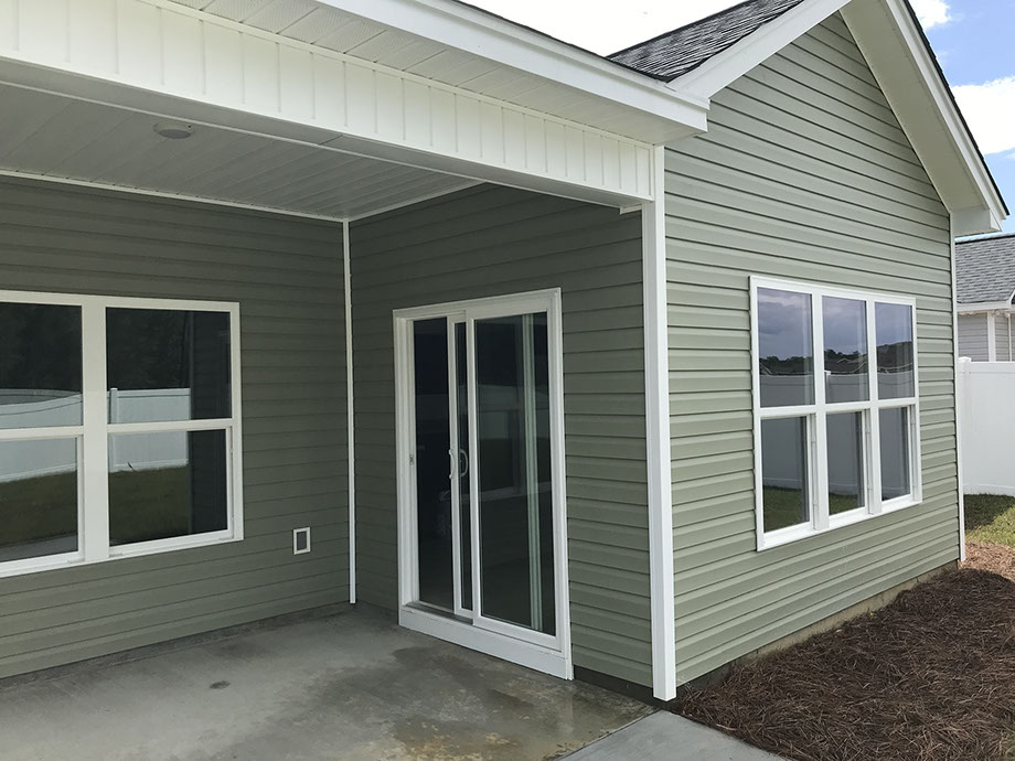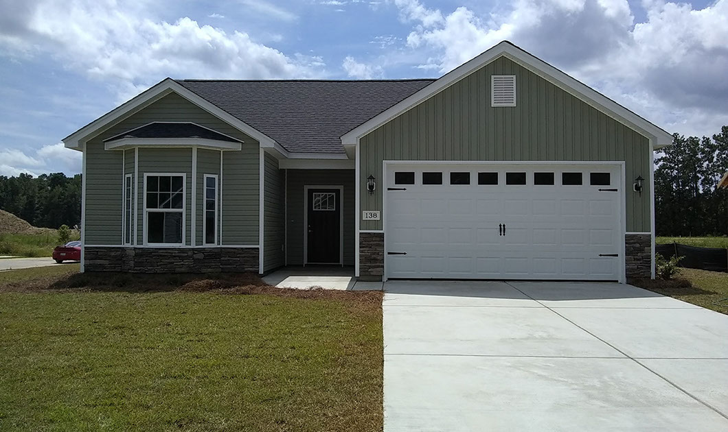 The Carley is an open 3 bedroom, 2 full bath split floor plan. This very popular plan comes standard with 18” tile flooring in all wet areas and your choice of vinyl flooring, carpet or a mix of both throughout the rest of the home. The kitchen is equipped with a breakfast bar, dining area, stainless steel appliances, pendant lighting, flushed LED lighting, 3 large windows to allow an abundant amount of natural light and cabinets that include crown, hardware and soft close drawers. The master bedroom features a beautiful bay window with a sitting area, spacious walk-in closet, tray ceiling, ceiling fan and a linen closet. One of the guest bedrooms has a bay window and both guest bedrooms come standard with flushed LED lighting. All ceilings are standard at 9’ or vaulted. All garages are finished and have pull down stairs to access the attic storage. The garage door has windows, comes with a remote and is wi-fi capable. A gutter for the front door is included as a standard feature. Exterior landscaping features include, completely sodded yards, plant beds and street trees for you to enjoy.