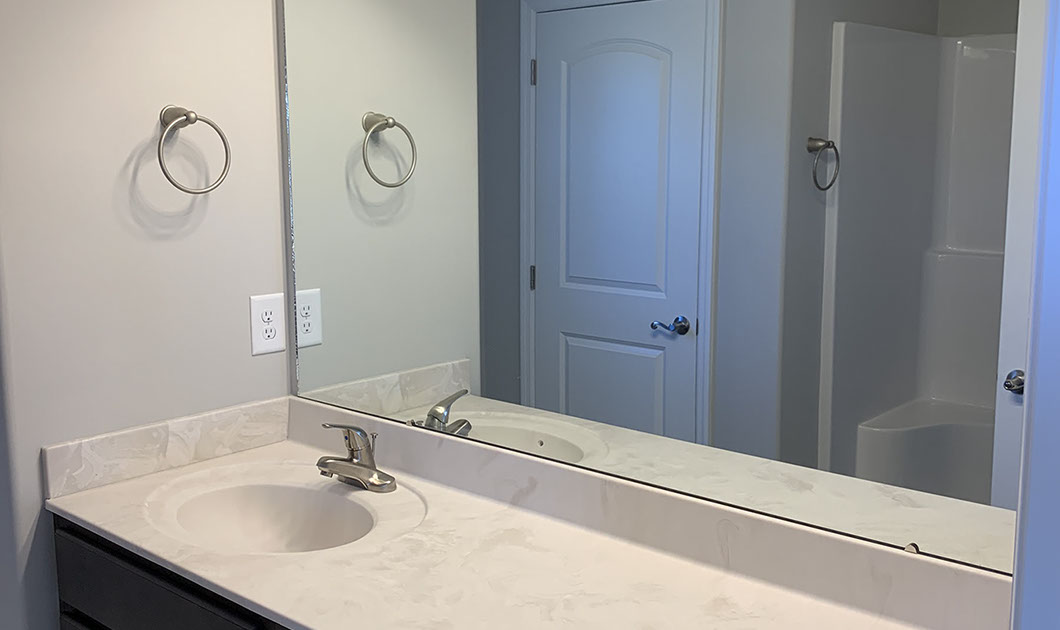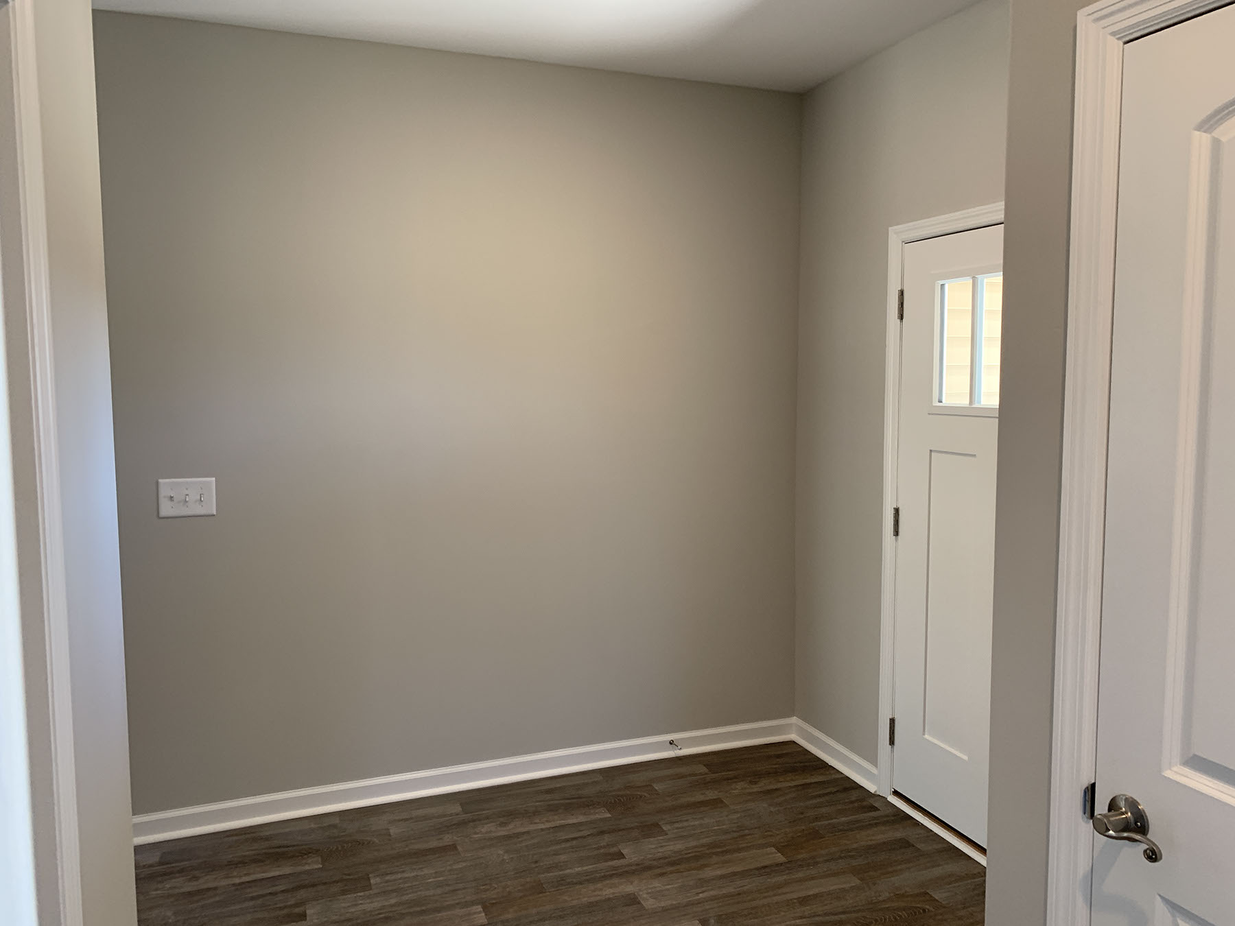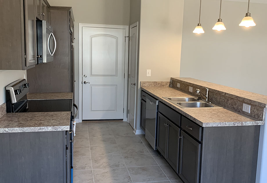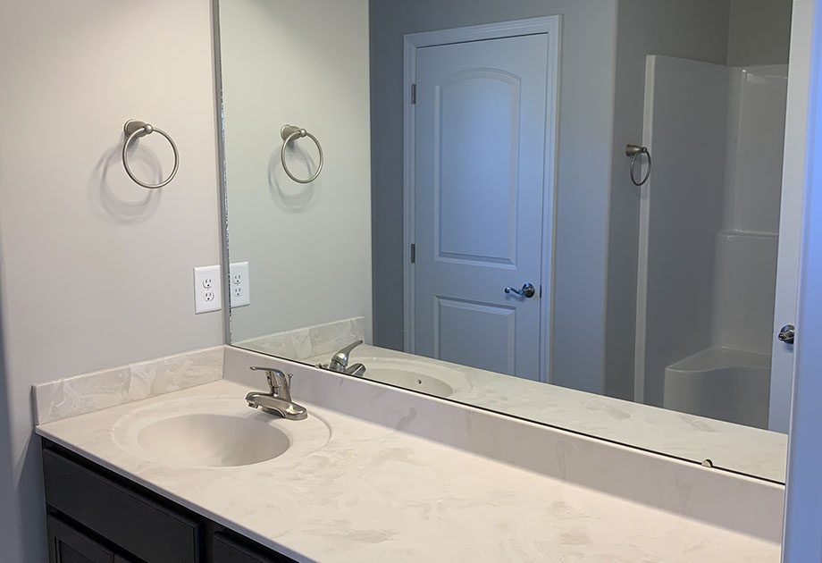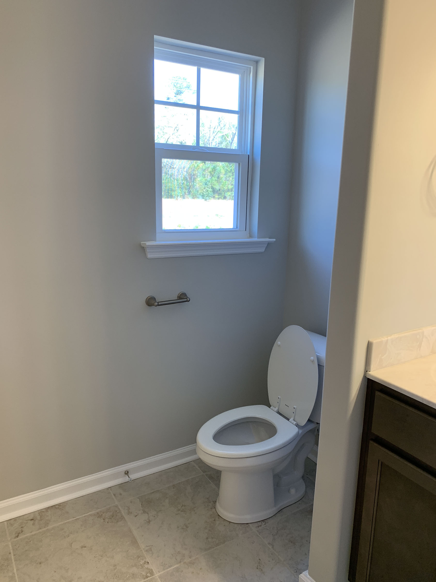The Haley is an open 3 bedroom, 2 full bath floor plan. The Haley comes standard with 18” tile flooring in all wet areas and your choice of vinyl flooring, carpet or a mix of both throughout the rest of the home. The kitchen is equipped with a breakfast bar, dining area with a bay window, two pantry’s, stainless steel appliances, pendant lighting, flushed LED lighting, cabinets that include crown, hardware and soft close drawers. The master bedroom features a spacious walk-in closet, vaulted ceiling, ceiling fan and a linen closet. Both guest bedrooms come standard with flushed LED lighting. All ceilings are standard at 9’ or vaulted. All garages are finished and have pull down stairs to access the attic storage. The garage door has windows, comes with a remote and is wi-fi capable. A gutter for the front door is included as a standard feature. Exterior landscaping features include, completely sodded yards, a rear patio, plant beds and street trees for you to enjoy.